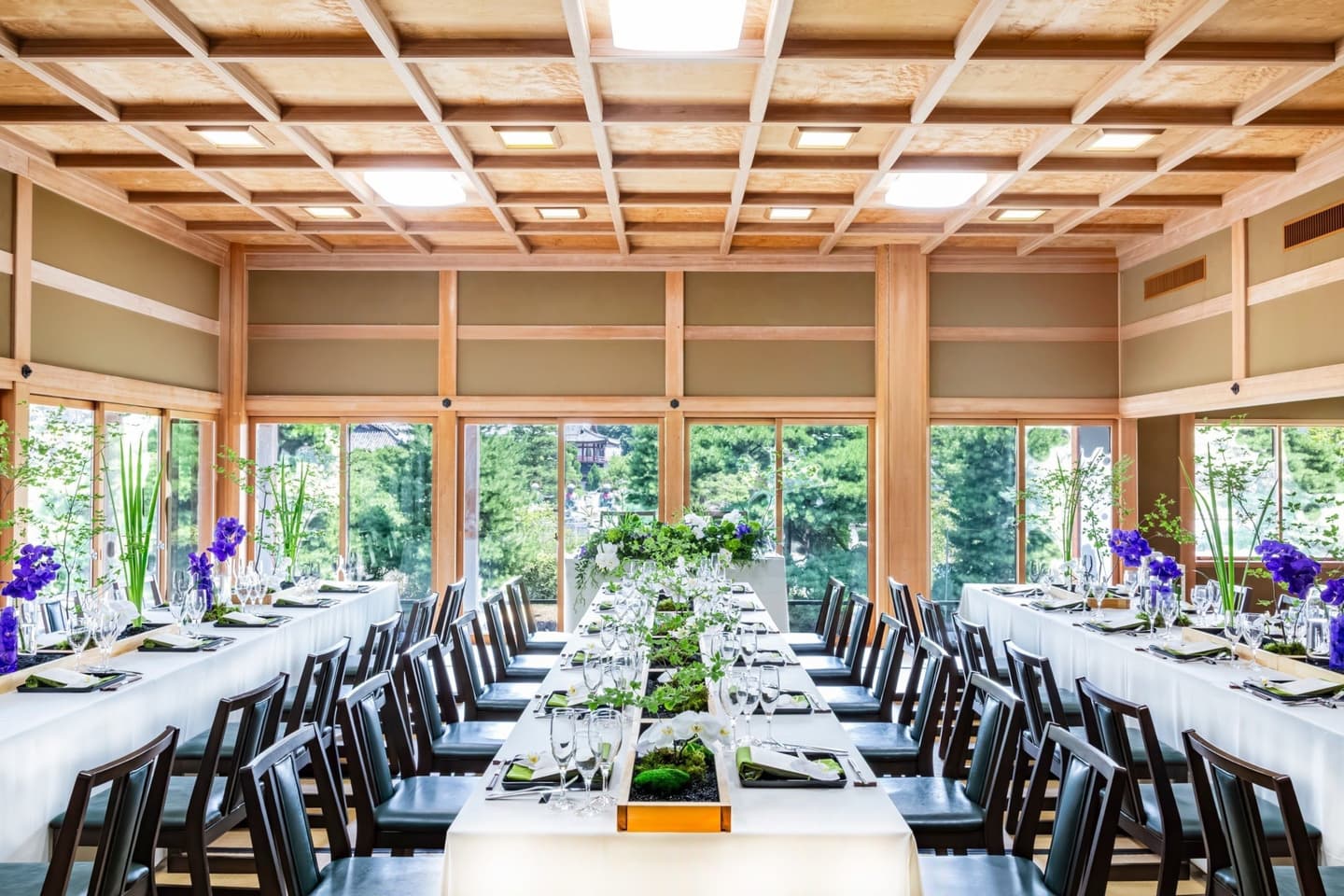 旧片倉別邸は長野県諏訪市に位置し、もとは片倉財閥の特別室の「菊の間」。昭和天皇や皇族も泊まられたその高貴な場所はすでに特別な空間を意味します。2026年よりこの菊の間で、結婚式のご会食や披露宴をご案内いたします。日本最古の神社のひとつと言われる諏訪大社で厳かな神前挙式を行い、その後は現在、国登録有形文化財となっている旧片倉別邸「菊の間」でゲストの皆様と記憶に残るお時間をお過ごしいただけます。おもてなしの自慢の料理は、かたくらシルクホテル料理長によるフレンチのフルコースをご用意。この場所だからこそ叶う結婚式がここにあります。2026年よりご案内開始予定です。